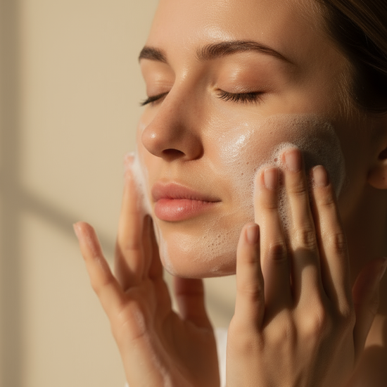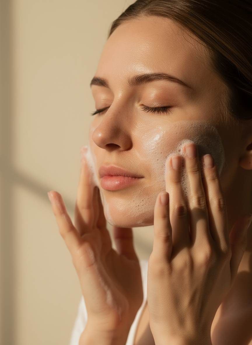 Unser Reinigungsgel befreit die Haut sanft von Make-up, Talg und Umweltrückständen – ganz ohne sie auszutrocknen.